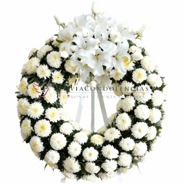 Esta en nuestro ser honrar a las personas con que compartimos la vida y que hoy han partido. Envía esta corona fúnebre de Polares con un medallón de flores de aroma Concador o Casablancas y Rosas blancas.