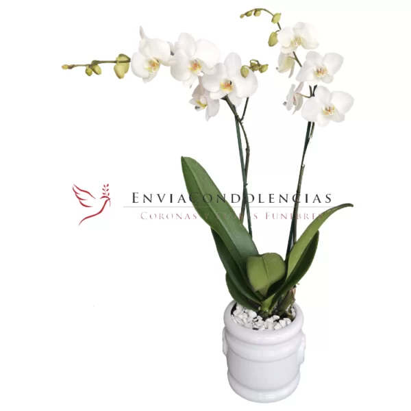 Regala flores duraderas, hermosa planta de orquídeas Phalaenopsis en tono blanco (pregunta por más tonos disponibles), doble tallo, en una base de cerámica con piedras de río.